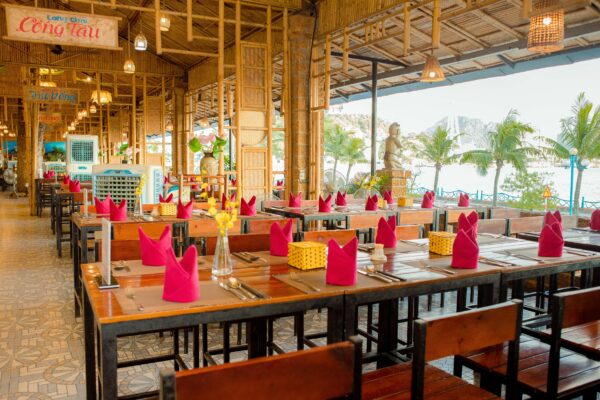 Chính vì nằm ở vị trí đắc địa nên nếu du khách lựa chọn Buffet Sen Á Đông, vừa ăn, du khách vừa có thể ngắm cảnh Vịnh Hạ Long, những cabin của Vòng quay Mặt trời “bay” ngang qua Vịnh Cửa Lục hay ngắm những con tàu ra vào cảng biển. Một không gian trong lành, lãng mạn sẽ mang đến cho du khách một bữa ăn mang trong mình hương vị biển khó quên.